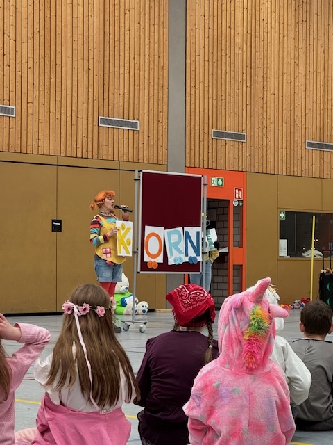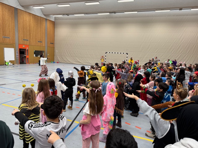 Dort wurden die Kostüme gekürt und es gab tolle Auftritte. Ein besonderes Highlight war die Premiere unseres neuen Schulsongs. Die 4. Klassen hatten ihn mit Unterstützung von Eva Württemberger selbst komponiert.