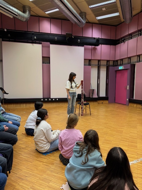 Zu Beginn wurde uns ein spannendes Instrument vorgestellt: das Fagott. Eine Musikerin aus dem Orchester erklärte, wie das Fagott aufgebaut ist, wie sie klingt und welche Rolle sie im Orchester spielt. Die Kinder konnten dabei viele interessante Eindrücke sammeln.